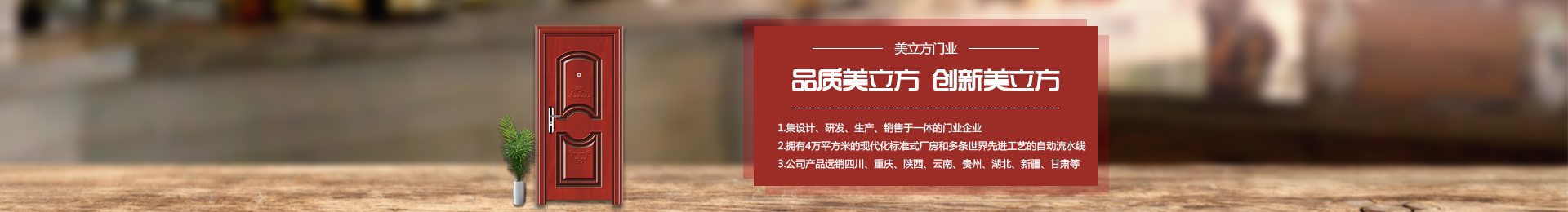 四川美立方門業(yè)有限公司座落于中國西部門都、中國革命老區(qū)、中國書法之鄉(xiāng)蓬溪縣上游工業(yè)園德才西路,廠區(qū)環(huán)境優(yōu)美、交通便利、物流發(fā)達,距國道318線300m,城南高速6Km,火車站8Km,系蓬溪縣人民政府招商引資企業(yè)。